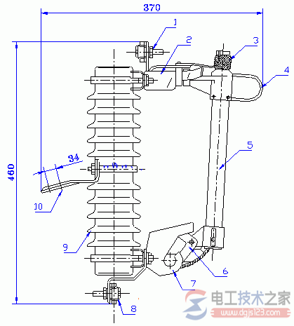 有關(guān)跌開式熔斷器主接線圖的具體規(guī)定,跌開式熔斷器的安裝應(yīng)符合某些規(guī)定,包括與垂線的夾角、相間距離、對(duì)地面距離,熔絲位置應(yīng)安裝在消弧管中部偏上等。
